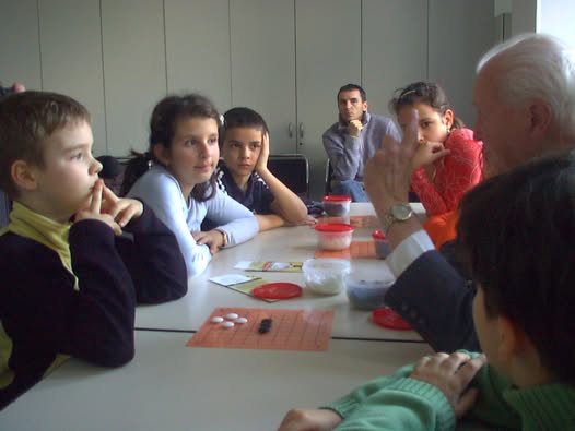 Viorel Arsinoaia und Cristi Neanu im April 2008 im AMG-Haus mit Schülern der Lenau-Schule.