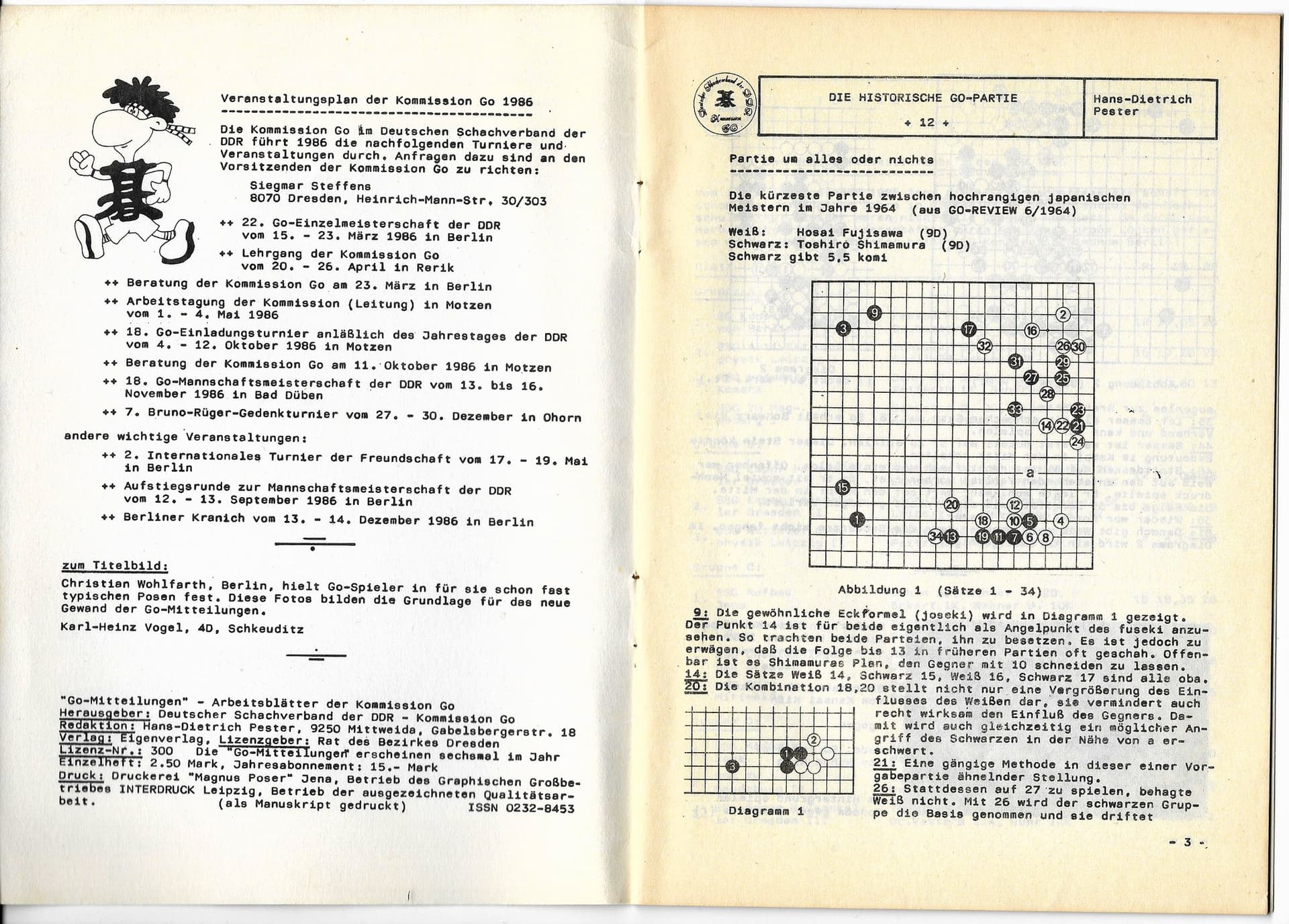 Contains kifu of games played by: Mattern, Dueball, Mutabzija, de Vries, Ekart, Wimmer, Goddard, Diamond, Katscher and Greb.